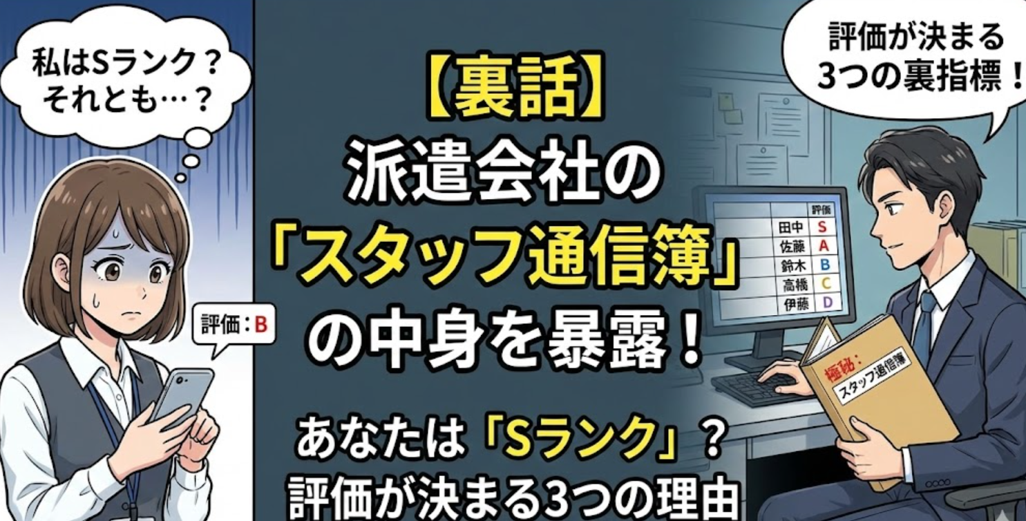 今日は、派遣会社の社外秘レベルの話をします。 皆さんは、派遣会社の社内システムに、あなたの「隠された通信簿(ランク)」が存在することを知っていますか?