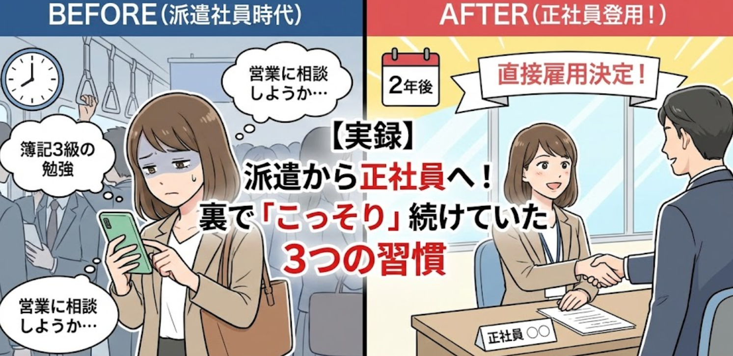 派遣から正社員になる人は、ただ運が良かったわけではありません。 「毎日の小さな勉強」「営業担当との綿密な作戦会議」、そして「ダメだった時の撤退ラインの設定」。これらを淡々と実行した結果です。