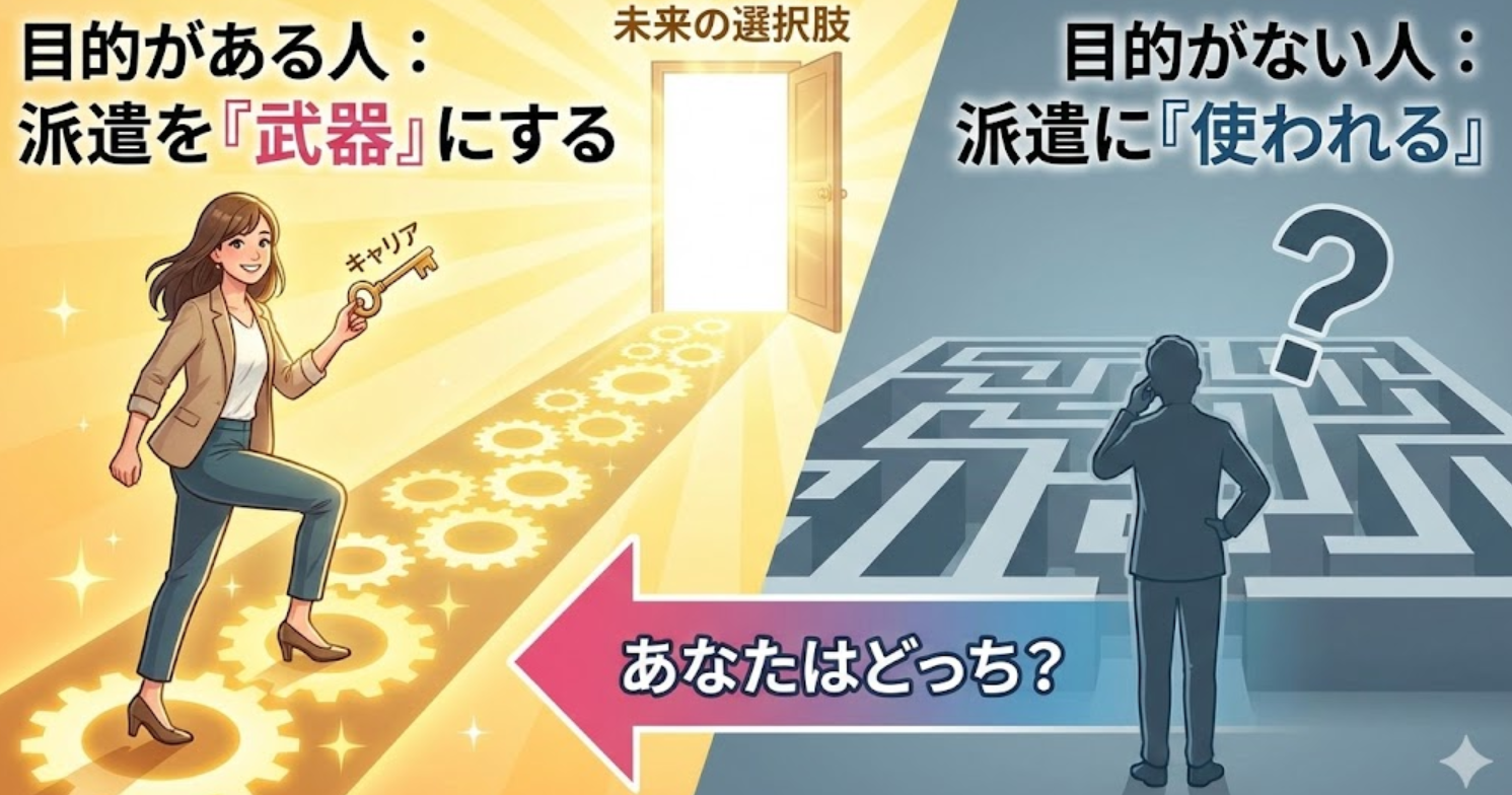 派遣という働き方がピタリとハマり、人生を好転させていく人には共通点があります。 それは、派遣を「目的」ではなく「手段」として割り切っていることです。