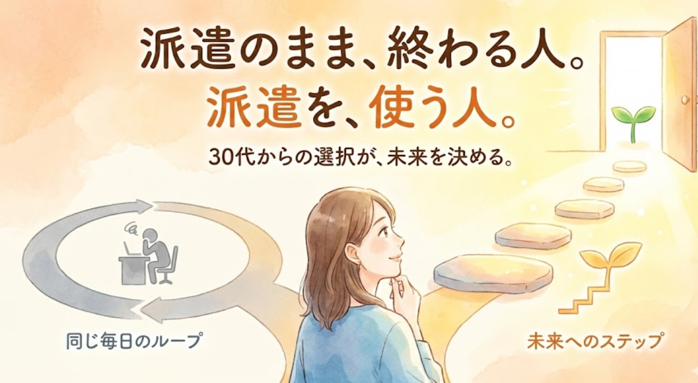 派遣という働き方は、自由で、いろいろな会社が見られて、責任も重すぎない。 非常に便利な働き方です。 しかし、そこには「ぬるま湯の沼」があります。 一度浸かると抜け出せなくなり、気づけば年齢だけ重ねて、市場価値が下がってしまう。